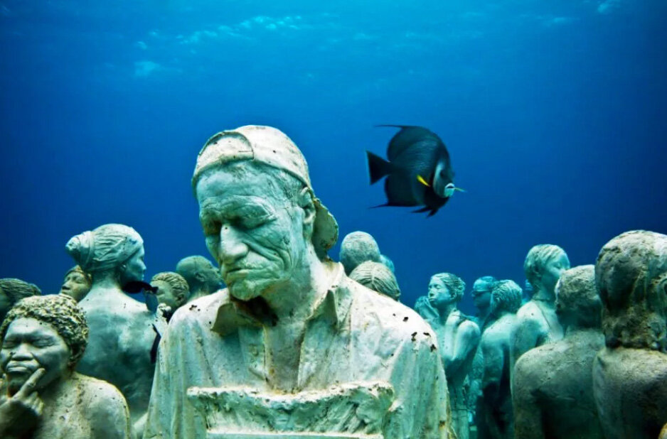 Есть такой человек – Джейсон Тэйлор (Jason de Caires Taylor). Замечателен он тем, что сумел создать первый в мире подводный парк скульптур, состоящий из 68 статуй в заливе Молинье (Карибское море). Джейсон Тейлор - это один из немногих художников, которому удалось совместить совершенно несовместимое. У него получилось объединить свой талант скульптора, художника по керамике и инструктора по дайвингу в одном арт –проекте под названием «Бесшумная эволюция». Таким образом, был создан «Парк подводных скульптур». Основная идея проекта это ликвидация негативного воздействия туристов на естественные процессы развития коралловых рифов. Тейлор создает искусственную среду для восстановления и поддержания развития кораллов. После завершения работы инженеров, биологов и строителей скульптурами занялись морские жители, которые начали интенсивно заселять загадочный город, созданный человеком. Для создания парка Тейлор выбрал коралловый риф, который находится в водах Вест – Индии, возле побер