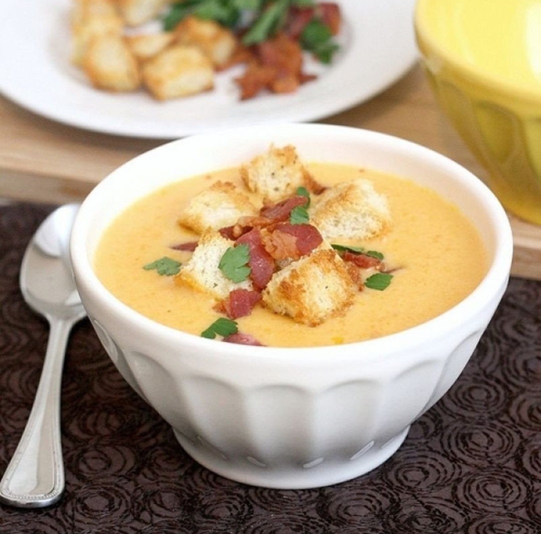 Сохрани и приготовь 📌 1. Сливочно-сырный суп с чесночными сухариками Ингредиенты: Сливки 20% — 250 мл Вода — 1,5 л Сливочное масло — 50 г Мука — 1 ст. л. Лук репчатый — 1 шт. Чеснок — 1 головка Картофель — 2 шт. Красный болгарский перец — 1 шт. Ломтики белого хлеба — 3–4 шт. Твердый сыр — 150 г Петрушка — 1 пучок Укроп — 1 пучок Мускатный орех — 1 щепотка Чабрец (тимьян) — 1 ч. л. Базилик — 1 ч. л. Приготовление: 1. Картофель очистите и нарежьте мелкими кубиками, залейте его водой, слегка посолите и варите до готовности 15-20 минут. 2. Тем временем нашинкуйте лук, очистите чеснок и измельчите, болгарский перец разрежьте пополам и освободите от семечек (если перец очень крупный, хватит и половинки). 3. Перец отправьте в разогретую до 190 °C духовку на 10-15 минут до появления черных подпалин. 4. Лук и половину чеснока поджарьте на сливочном масле (25 г) до золотистого цвета. 5. Добавьте к овощам ложку муки и хорошо перемешайте, поджарьте до появления слабого орехового