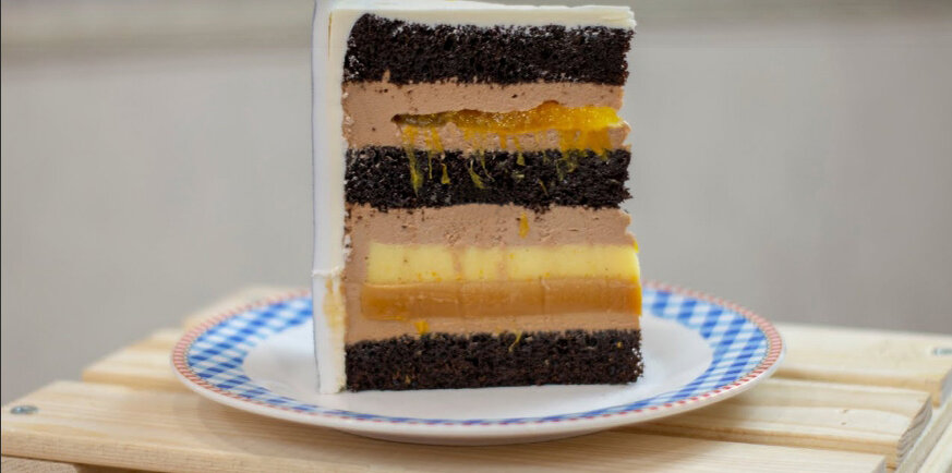 Всем привет! Сегодня мы ( @i_tortodel ) с вами приготовим торт с классическим сочетанием шоколад, апельсин. Бисквит для этого торта я приготовила заранее. Это вкуснейший шоколадно-карамельный бисквит, вкус которого напоминаем пористый шоколад. Подробное видео рецепта вы найдете в конце статьи. Итак...приступим к приготовлению. ➡ Рецепт Шоколадно - карамельный бисквит Перед сборкой торта разрезаем бисквит на 3 коржа. Карамельный слой: Сахар - 120 гр. Сливки 33% - 120 мл. Масло слив. - 60 гр. Желатин - 4 гр. + 24 мл холодной воды В сотейник с толстым дном пересыпаем сахар и отправляем на медленный огонь. На начальном этапе ничего не мешаем, а лишь покачиваем сотейник из стороны в сторону. Когда по краям появится ободок янтарного цвета, то лопаткой можно помогать сахару распределяться по дну. Снимаем сотейник с огня, когда весь сахар расплавится. Постоянно помешивая карамель вливаем горячие сливки. Туда же отправляем масло комнатной температуры. Все перемешиваем и отправляем сотейник