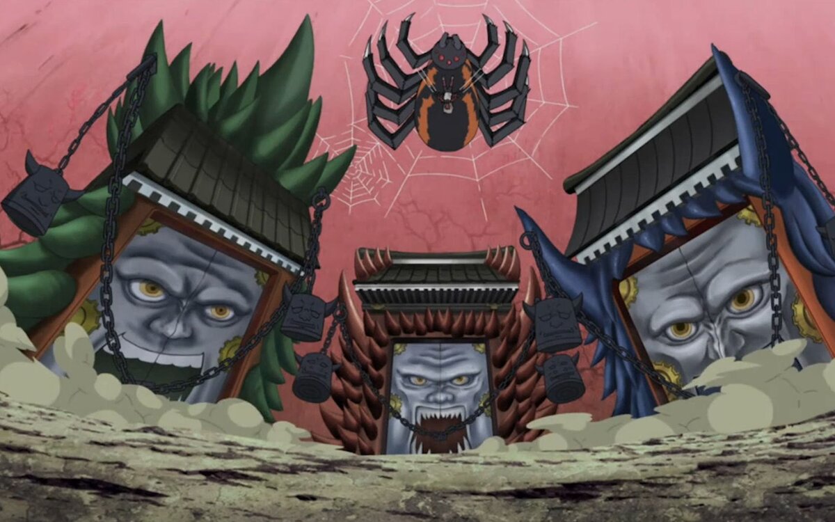 Демоны отличаются друг от друга и владеют разным оружием. Все они очень большие и мускулистые. Один носит тёмно-зелёный костюм, а его волосы полностью скрывают голову. Он владеет гигантской шипастой дубиной. У другого оголен торс, а сам он носит коричневые брюки. Он лысый и имеет шрамы на голове, подобно Морино Ибики. В бою он использует клинки, привязанные к его рукам. Верхняя часть тела третьего окутана бинтами, а на ногах надеты брюки. Его голова, покрытая шипами, отдёрнута в обратную сторону. У него отсутствуют руки, отчего он не владеет оружием. Вокруг талии каждого располагаются пояса, такие же носят члены Отогакуре но Шиноби Йонин Шу.