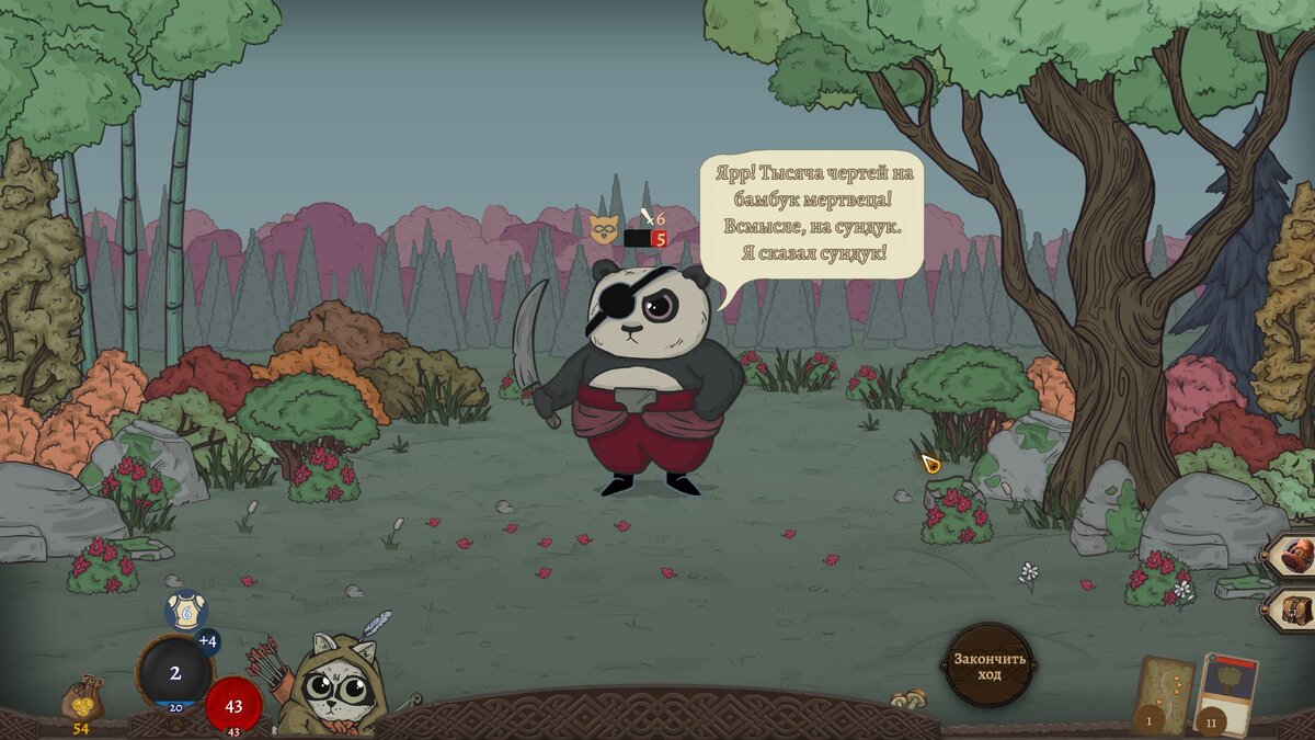 Мне очень понравился карточный рогалик Slay the Spire, в котором более 100 часов я провел как на одном дыхании. И когда увидел где-то в новостях, что в раннем доступе появилась похожая игра, которую еще и сделали два русских разработчика, то для меня этот проект стал обязательным к рассмотрению. Первый взгляд на игру Несмотря на вступление, уточню, что Deep, In the Forest - вовсе не клон Slay the Spire, а скорее переосмысление и работа в идентичном жанре. Но это самостоятельный проект со своим стилем и механиками. Страница игры в Steam >> По стилю оформления и персонажам - это что-то вроде злой сказки, в которой нечто очень недоброе произошло в сказочном лесу. Мы играем за пушистика, которому пришлось встать на тропу войны против королевских зверей-солдат обезумевшего царя зверей. Наша цель, ведя партизанскую войну в родном лесу, победить сначала баронов царя (волка, лису, лося), а затем добраться и до самого льва. Как можно догадаться, все бои в игре - карточные. И мы собираем свою ко