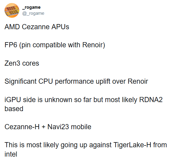 В начале этого года AMD анонсировала мобильные процессоры Ryzen 4000 Renoir. С того момента прошло много времени, ноутбуки с соответствующими процессорами только начинают появляться в магазинах, а компания уже вовсю работает над следующим поколением мобильных процессоров. Пользователь твиттера @_rogame опубликовал некоторые данные относительно новых процессоров. С его помощью мы узнали, что Ryzen 5000 будут основываться на архитектуре Zen 3, как и настольные процессоры Ryzen 4000, которые должны появиться в конце этого года. Помимо новой архитектуры, Ryzen 5000 получат и новое название – Cezanne. AMD любит использовать имена известных художников и на этот раз поступила аналогичным образом. Французский художник Paul Cézanne является ярким представителем постимпрессионизма. Если текущее поколение мобильных процессоров Ryzen 4000 использует модифицированную версию интегрированной графики Radeon Vega, то следующее поколение сможет удивить производительностью, так как будет основываться на