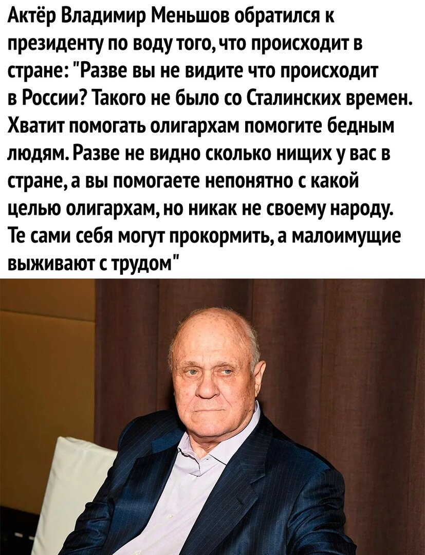 Владимир Меньшов - "Такого не было со Сталинских времен!".О поддержке малоимущим гражданам России.