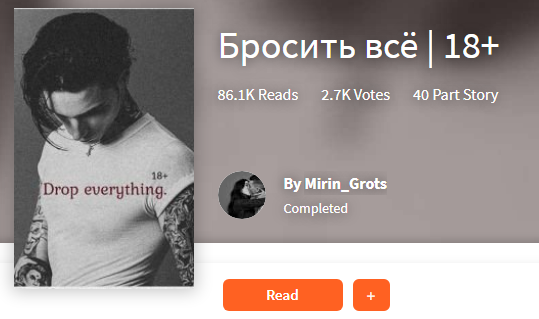 Для начала хочу поссоветовать супер классное приложения для чтения книг и рассказов, очень удобное приложение. Рассказы пишут не известные писатели ,но делают это очень круто. 1)Бросить всё /18+ Очень классный рассказ. Очень классный рассказ про крутого парня певца, который сразу же невзлюбил главную героиню.У нее тяжелая судьба, тиран отчим и мать,которой совсем пофиг на нее. Главный герой Хантер не хочет заводить серьезных отношений, для него каждая девушка просто на одну ночь.Но изменит ли она его, и что же будет с ними дальше,после того как их сведет судьба? 2)"You will be a light in my darkness" Безумно классный рассказ. Он главарь банды, жестокий ,который никого не щадит и не жалеет,она приехала в город от своего бывшего парня и они встретятся в темном переулке,он просто отдаст ей свою куртку. И что же будет дальше? Много ссор,ненависти и убийств, любви и романтики. Она станет его привычкой ,она сотворит с ним то,чего он всегда боялся, она будет долго убегать от него, ненав