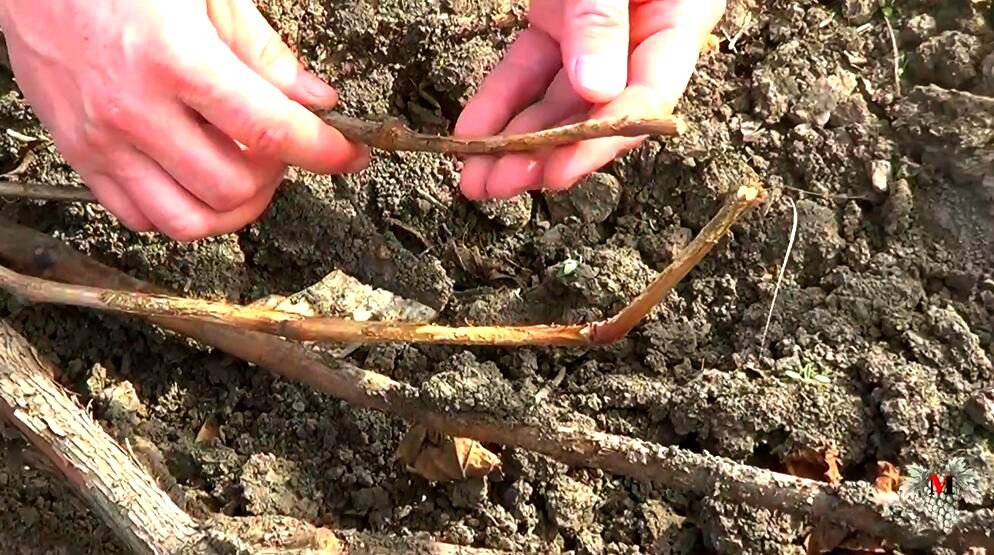Та часть куста винограда, которая была укрыта при помощи земли полностью целая и не имеет никаких повреждений.
