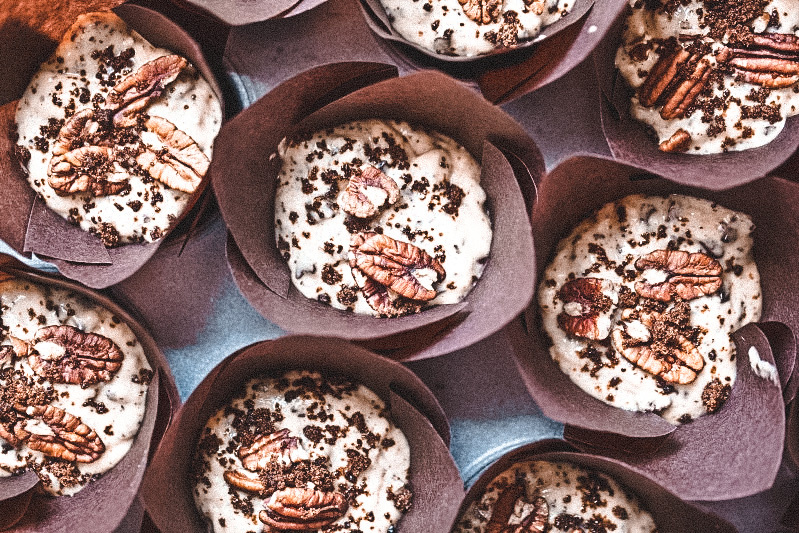 Маффины с бананом, кусочками шоколада и орехами пекан