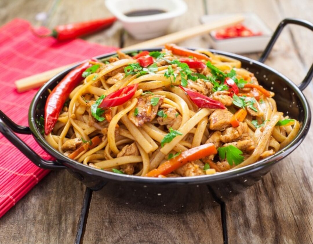 Лагман с курицей очень вкусный вариант ужина. Если у вас есть время то обязательно приготовьте это блюдо. Ингредиенты: Курица - 700 г Лук репчатый - 2 шт. Помидор - 1 шт. Морковь - 1 шт. Перец болгарский - 0,5 шт. Паста томатная - 2 ст. л. Макароны (лапша длинная) - 350 г Масло подсолнечное - 2 ст. л. Перец черный молотый Соль мелкая Готовка: 1. Курицу вымыть, нарезать кусочками. На сковороде разогреваем масло, и обжариваем курицу в течении 10 мин. 2. Лук нарезаем полукольцами и добавляем к курице. Обжариваем в течении 10 минут. 3. Морковь нарезаем кубиками и отправляем к мясу и луку. Тушим 5 минут. 4. Помидор обдать кипятком и снять кожицу. Нарезаем помидоры и перец кубиками, добавляем к мясу с овощами. Также добавляем томатную пасту, перец, соль. 5. Перемешиваем и тушим под закрытой крышкой 15 минут. 6. Отвариваем макароны и перемешиваем с курицей с овощами.
