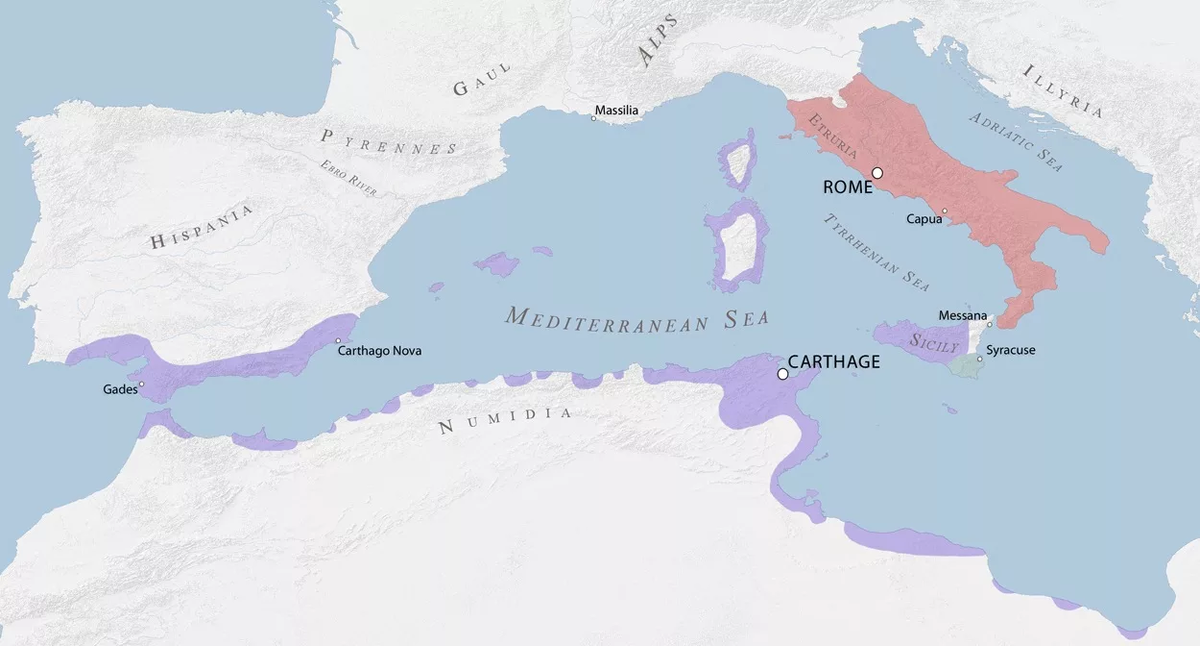 Дорогие читатели я предлагаю вам вместе со мной разобраться, каким трудом Римская республика победила в первой Пунической войне. В первой статье я попытаюсь раскрыть причины войны. Во-первых, стоит понять ,чего стоили противники перед войной, и предлагаю начать с Карфагена. Карфаген, на финикийском Кархадашт, был основан на территории Северной Африкив 823 году до н.э. аристокатами-эмигрантами из финикийского города. Тира. Кархадашт был расположен на берегу современного Тунисского залива. Такое месторасположение позволяло карфагенянам полностью взять под свой контроль торговые пути из Восточного Средиземноморья в Средиземноморье Западное.Также карфгеняне достигли большого уровня развития в сельском хозяйстве, об этом нам свидетельствует трактат Магона "О земледелии". Торговая активнасть пунийцев( так карфагенян называли римляни) привела к тому, что Карфагенская держава постоянно нарасщивала территории.К началу Первой Пунической войны под властью Карфагена находились побережья от Больш