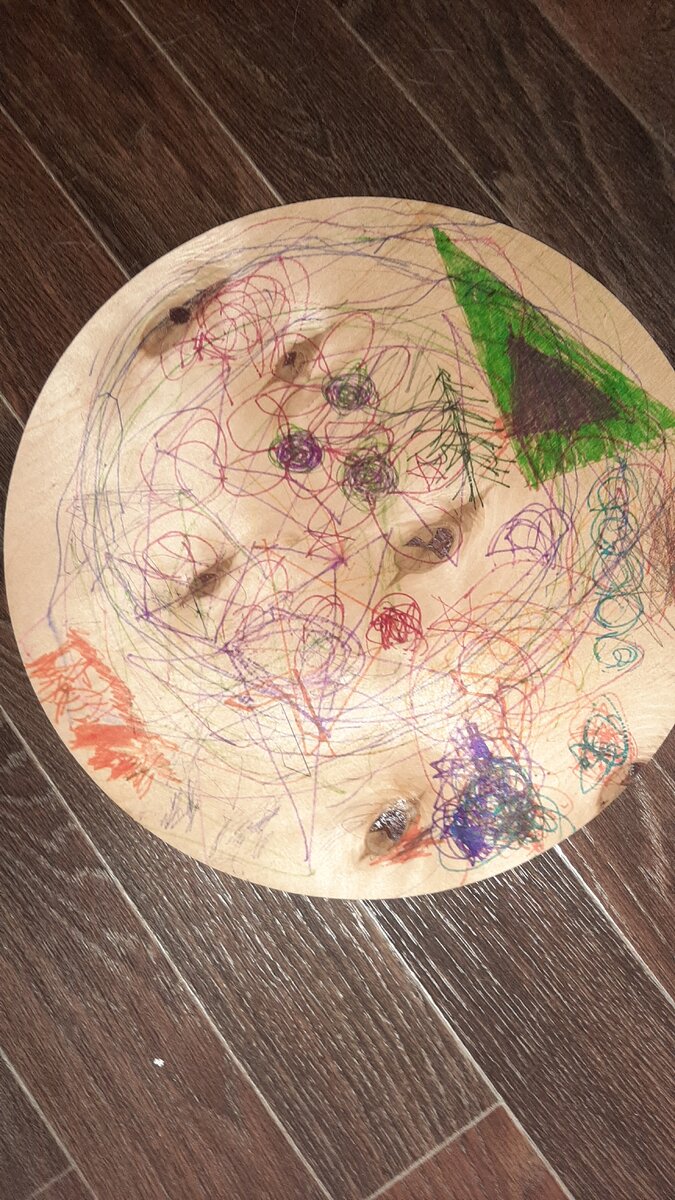 Находясь на режиме самоизоляции, я продолжаю искать, на чем бы еще потренироваться в искусстве рисования смолой. На этот раз мое внимание привлекли две табуретки из фанеры. Они были приобретены примерно год назад и за это время мои любимые внуки оставили на них свои художества. Выглядели они примерно так. Сначала я хотела покрасить их какой-нибудь красочкой. Но теперь, когда я познакомилась со смолой, выбор очевиден. На этот раз я попробовала в качестве красителей чернила из гелевых стержней. Мне кажется это неплохое решение. Чернила легко выдуваются из стержня и очень хорошо перемешиваются. И еще использовала блестки для ногтей. В интернете по поводу смешивания смолы с красителем есть две разные рекомендации: одни авторы говорят о том, что краситель добавляется в смолу до отвердителя, другие рекомендуют окрашивать готовый состав. Поскольку я только учусь, то решила попробовать оба способа. Честно говоря я разницы не заметила. Наверное, это в силу моей неопытности. Вот что у меня в и