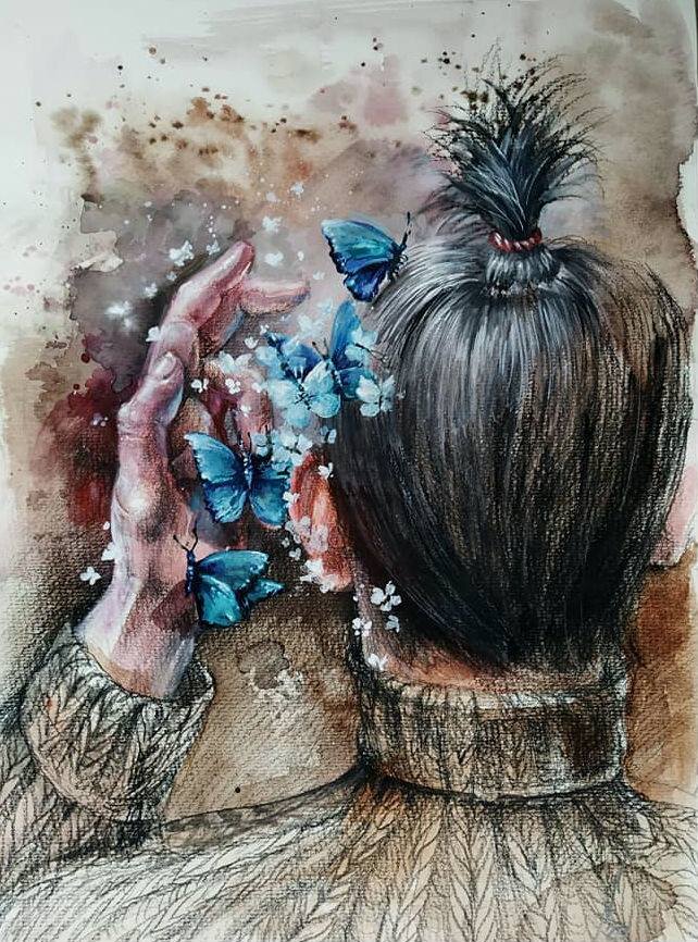 В комнате стояла тишина. Только слышался мерный ход секундной стрелки настенных часов Ingraham. Тик-так-тик-так, потом добавился прерывистый шум начавшегося дождя. Ветер ударял в стекло и его удары тоже были ритмичные вух...вух...вух...Тори поежилась и надела вязаный свитер. Потом устроилась в кресло, закрыла глаза и услышала еле заметный звук, который не походил ни на тиканье часов, ни на уханье порывов ветра. Он был невесомым и представлялся шепотом какого-то духа, который витал дома. Шух..шах….шух..шах и тишина . Потом снова всё повторилось, но в быстром темпе. Тори вспомнила, что оставалась открытой только маленькая форточка на кухне, а в комнате всё было наглухо закрыто из-за начавшегося шторма. Надо было встать и закрыть форточку. Она ещё минутку послушала приятный шёпот духа, а потом открыла глаза и обомлела - вокруг нее порхали голубые бабочки, которые спасаясь от дождя залетели через открытую форточку на кухне.