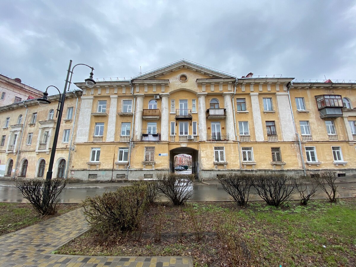 По соседу находится здание с колонами чуть по-меньше. Мало кто догадается, но это "больница речников" тогда, а сейчас поликлиника
