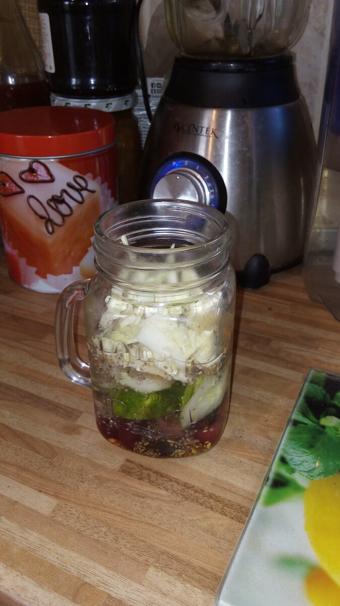 Уже 5 месяцев основа это столовая ложка семян (смесь чиа и льна) и пучок порезанной капусты. Это придает сытности. В для вкуса яблоко, финик, кусок лимона с кожурой. И вода.