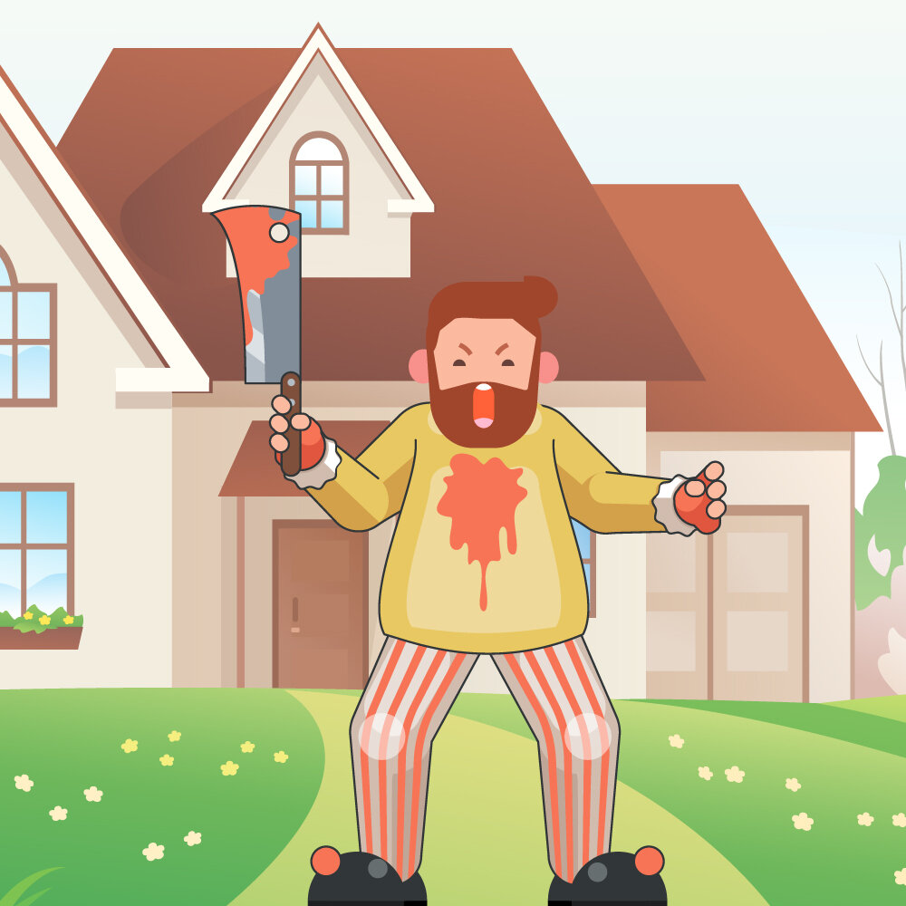 Тем временем, Серёга, как заправский маньяк, рубил меня, размахивая тесаком. Я истошно орал и размазывал куриную печень по одежде, медленно заползая во двор.