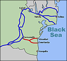 Вот на миникарте изображение канала Дунай - Чёрное море, находящегося в Румынии, соединяет черноморский порт Констанцу и город на Дунае Чернавода. :