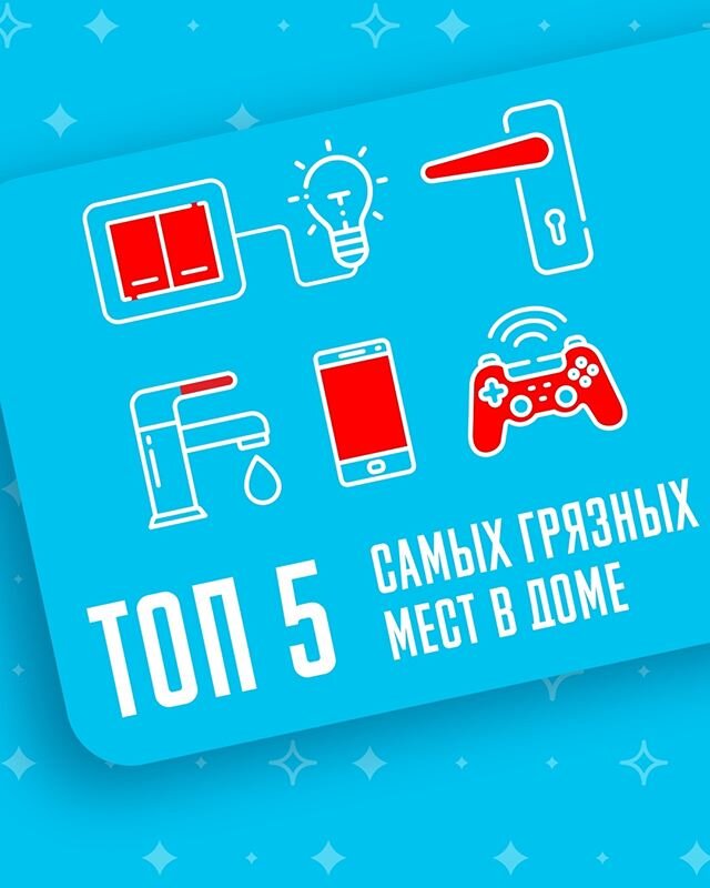 В каждом доме есть места и предметы, которые являются главными рассадниками бактерий. Уверены, о некоторых "грязных" местах вы даже не задумываетесь. Уверены, большинство из перечисленных "грязных" мест вы не дезинфицируете во время уборки! ⭐ Поговорим о 5 самых «грязных» элементах 1. Дверные ручки. Наши руки – основные переносчики микробов, и большинство людей используют их, чтобы открывать двери…НО, моете ли вы руки каждый раз по приходу домой или в офис, прежде чем открыть и закрыть входную дверь, дверь ванной комнаты? Уверены, что нет, так как это физически невозможно. 2. Мобильные телефоны. Содержат в 10 раз больше бактерий, чем сиденья от унитаза… и телефоны постоянно соприкасаются с нашими лицами. При этом мы берем их с собой везде - на улицу, в магазин, в общественный транспорт, в туалет, на работу, в фитнес зал, в больницу... наш мобильный друг всегда с нами. Протираете ли вы телефон каждый раз выходя из метро? Вот вам и еще один "самый грязный" предмет. 3. Краны. Ручки кра