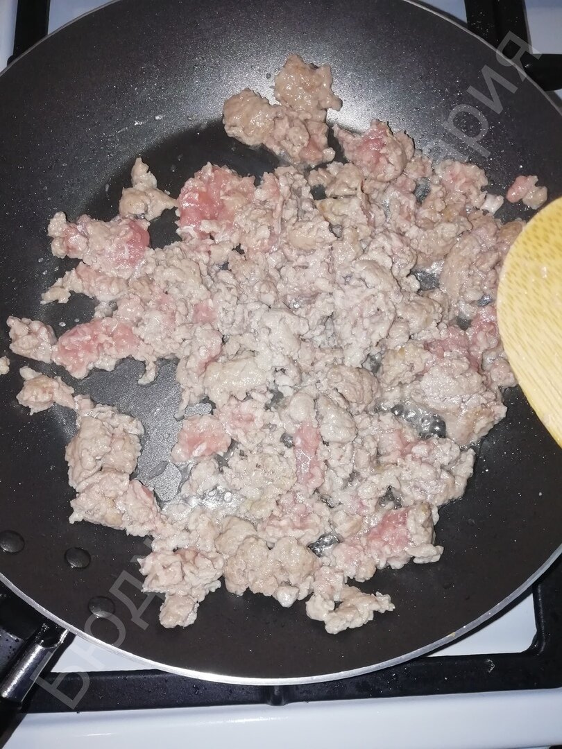 Сегодня, мои уважаемые читатели, я хочу поделиться с вами очень интересным рецептом. Этот рецепт может пригодиться, когда вы делали пельмени и у вас закончилось тесто, а фарш остался (и другие подобные ситуации). Большинство людей из оставшегося фарша могут сделать тефтелевый суп или просто сделать тефтельки и заморозить их (можно сделать что угодно). Часто бывают такие ситуации и встаёт вопрос, что же сделать с оставшимся фаршем? Именно для таких ситуаций я хочу вам рассказать про этот рецепт. Делается всё очень просто и быстро, а самое главное получается очень вкусно. Для приготовления булочки "крокодильчик" нам понадобится: Теперь, когда все ингредиенты на столе, мы можем приступать к приготовлению. Первым делом мы берём чистую тарелочку, перекладываем туда фарш и натираем лук на крупной тёрке. Добавляем соль по вкусу. Тщательно перемешиваем и отправляем на сковородку. Обжариваем до полуготовности. После этого мы берём чистую миску, разбиваем в неё два яйца и взбиваем. Трём сыр на к