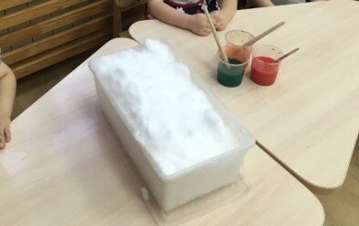 Особое значение для развития личности дошкольника имеет усвоение им представлений о взаимосвязи природы и человека. Овладение способами практического взаимодействия с окружающей средой помогает развивать познавательный интерес ребенка, его мышление, творчество, умение логически мыслить и обобщать. Существенную роль в этом направлении играют эксперименты, которые легко провести с детьми. Простейшие опыты со снегом и льдом чем-то напоминают ребенку фокусы, главное – дать маленькому человечку возможность все сделать самому. Для эксперимента нам понадобилась емкость для снега. Краски оранжевого, красного и зеленого цвета, кисточки, снег. Сначала мы с детьми определили цвет снега. Затем каждый ребенок брал снег и смотрел на то, как он тает на ладошке и превращается в воду. Таким образом подвели детей к тому, что снег холодный, а ладошка теплая - поэтому снег тает, снег белый, а вода прозрачная. Затем мы окрашивали снег в разные цвета. Вывод: снег рыхлый и поэтому впитыва