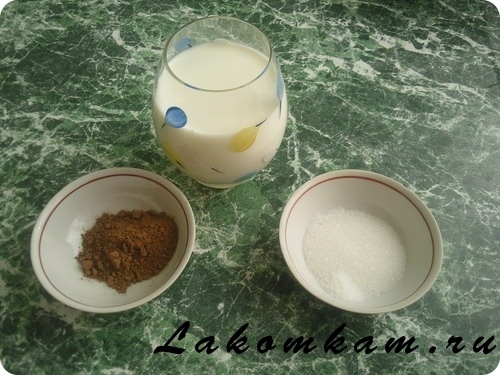 Напиток «Коктейль шоколадный». Приготовление. Приготовьте молоко, какао, сахар с ванилином.