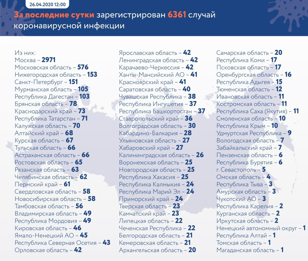Количество зараженных коронавирусом в России превысило 80 тысяч человек.