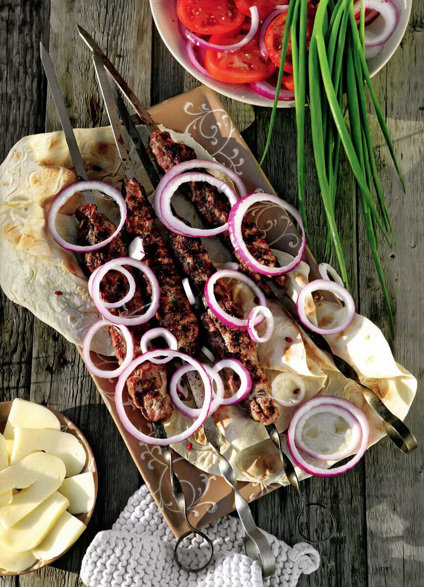 Всем привет. Я уже писал статью про люля-кебаб. Сегодня вариант этого блюда в грузинском колорите. Берем: 500 г мякоти говядины, 500 г мякоти жирной свинины или баранины, 1- 4 средние луковицы, 1 ч. л. молотого барбариса, соль, свежемолотый черный перец, лук, барбарис и листы тонкого лаваша для подачи. Всем приятно аппетита. На последок видео с более подробным описанием рецепта.
