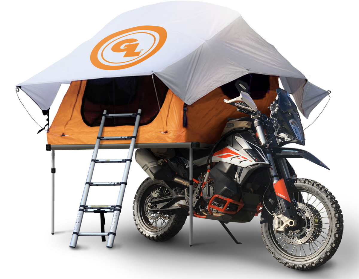 То есть, это некая палатка на собственных «ногах», только закрепленная на мотоцикле, что упрощает ее транспортировку и раскрытие.