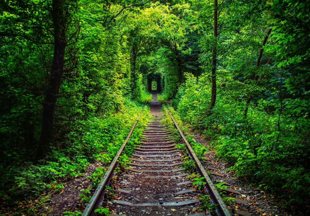 Настоящее чудо природы, будто сошедшее с фантастических картин, на самом деле существует недалеко от посёлка Клевань. Не иначе как феноменом, это не назовёшь, ведь удивительным образом кусты и деревья сплелись так, что получился 4-километровый зеленый тоннель. Поезда здесь ходят до сих пор, но нечасто — всего 3 раза в сутки, поэтому времени, чтобы сделать фото, у вас будет предостаточно. Однако чаще в тоннель любви приезжают пары, желающие укрепить свои чувства. Считается, что если влюбленные вместе пройдут через тоннель от начала до конца, то загаданное ими желание обязательно сбудется. Кроме того, здесь принято сажать растения, символизирующие чувства друг к другу.
