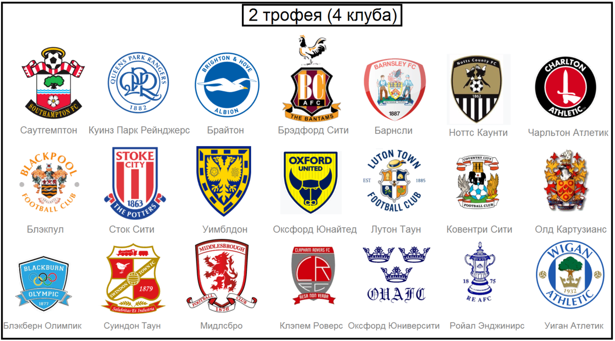 Начать нужно с того, что 21 английский клуб имеет только по одному трофею. Среди них "Квинс Парк Рейнджерс", у которого за 138 лет - один кубок лиги 1967 года. "Клэпен Роверс" был распущен более 100 лет тому назад, однако успел выиграть кубок Англии 1880 года. Выше по иерархии находится клубы, у которых более одного титула. 5 трофеев имеет трехкратный чемпион Англии "Хаддерсфилд Таун". А также "Вест Хэм" и "Лестер". Больше десяти наград у "Ньюкасла", "Вулверхэмптона", "Ноттингема" и "Блэкберна". Пятерка лучших выглядит следующим образом: "Фулхэм", "Кристал Пэлас", "Халл Сити", "Уотфорд" и "Борнмут". Поверили? К сожалению, эти клубы ничего значительного не выигрывали. Трофейная комната МЮ ломится от 66 наград, правда, в международных соревнованиях у них 8 титулов. 15 республик бывшего СССР – кто сейчас там самый титулованный? Ставь лайк, если информация была полезной. До встречи на "спортивном"