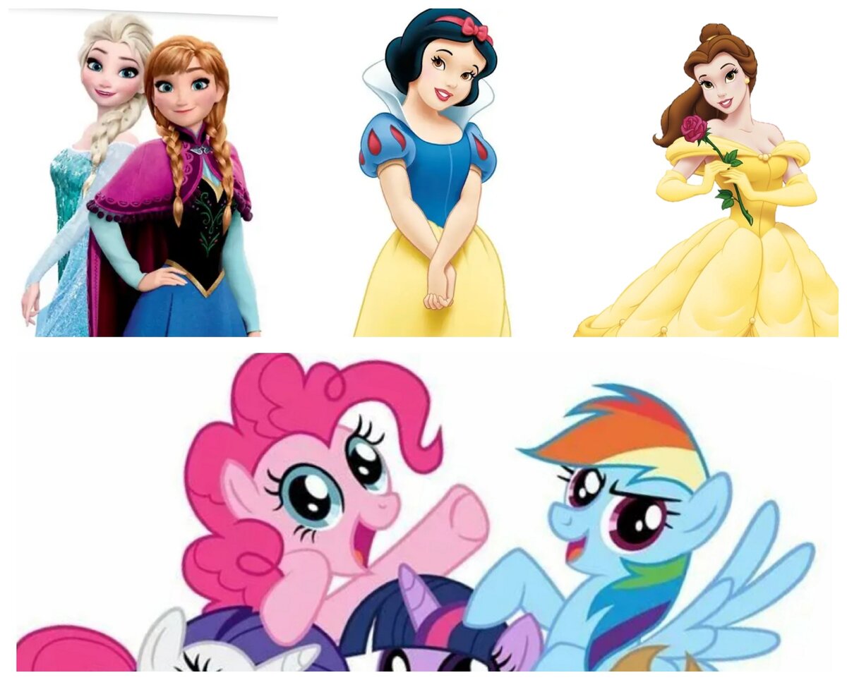 Привет, мультяшные мои! В мульто-мире есть два крупных мега-популярных направления: принцессы и пони. И, хотя создатели и иллюстраторы у этих героев разные, давайте попробуем сопоставить - какие у них есть сходства и кто на кого похож внешне или по характеру. p.s. Если не согласны с сопоставлением, обязательно оставляйте свои комментарии. Еще один тест про принцесс. Больше статей про принцесс: Стильные принцессы Дисней. Fashion-иллюстрация Где собрались все вместе принцессы Дисней? Дисней можно не только смотреть, но и читать. О принцессах и других героях мультфильмов
