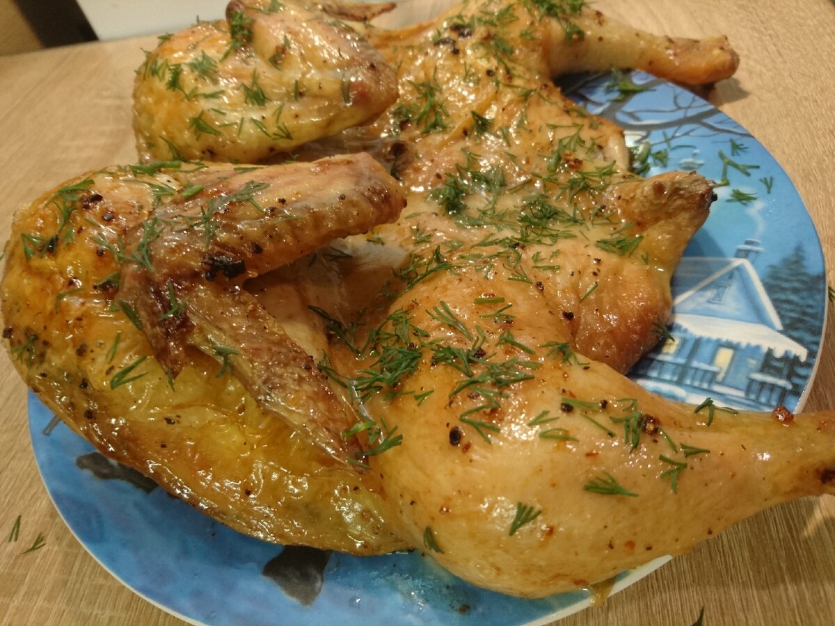 Здравствуйте, мои дорогие читатели! Сегодня хочу рассказать и показать как готовлю курочку в духовке. Я очень люблю курицу и яйца, жить без них не могу. Даже кое-кто называет меня "куроненавистницей" за эту любовь. Может кто то скажет что курицу приготовить просто, но я так не считаю(для меня конечно это просто). Часто в гостях на стол подавали курицу запеченную в духовке, но крайне редко она была вкусная. Зачастую люди в погоне за оригинальным вкусом применяют всевозможные приправы и "увкуснители", при этом запах и вкус курицы становится мягко говорят "фу". С моим рецептом вы всегда будете "в дамках"! Перейдем к рецепту. _________________________ Что понадобиться : 1. Курица или цыпленок 2. Соль 3. Перец горошком 4. Чеснок 5. Духовка и противень _________________________ Для начала курицу надо вымыть тщательно. Далее понадобится соль, перец и чеснок. Солим, перчим(мелем мельницей или раздавить плоскостью ножа на доске) по вкусу. Чеснок (3-5 штук, зависит от величины) выдавли