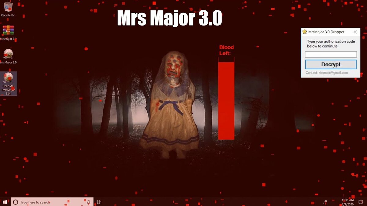 MrsMajor 3.0 это новый компьютерный вирус 2018 года который устрашает пользователя и одновременно заставляет заинтересоваться в нем. На сегоднейшний день существует уже три версии вируса. Сегодня, мы постараемся понять как он работает и как от него избавиться. Если вы каким-то образом скачали вирус, то первым делом на ваш рабочий стол выскочит окошко о том, что через 23 секунду ваш компьютер будет заражен вирусом а так-же предлогает прочитать правила. В правиле говориться о том, что не стоит искать антивируса в гугле ибо "ничего" не поможет. А при попытке найти, компьютер будет ловить "экран смерти". Через 23 секунды компьютер сам перезагрузиться и будет заражен. После того как компьютер будет перезагружен вирусом, все иконки на рабочем столе будут иметь кровавые очертания, глаза. На заднем фоне будет играть музыка а на обоях будет весеть "Анабель". Спустя несколько минут работы компьютера экрна будет заливаться кровью. Как же избавиться от "Прколятья"? При попытке включить программу