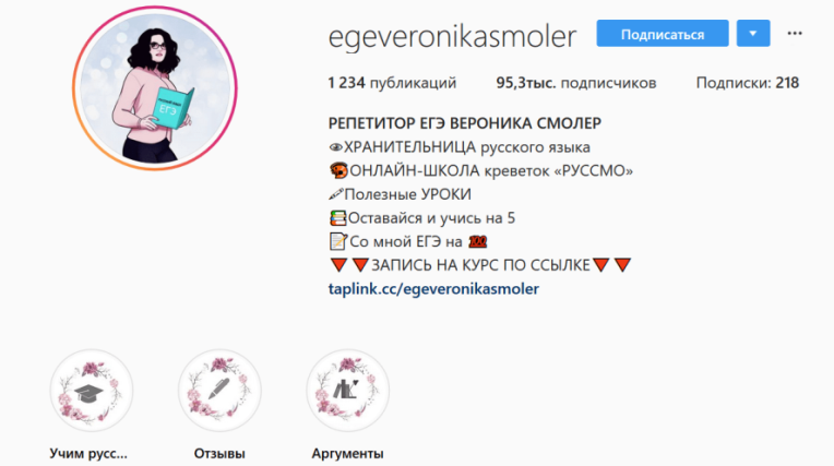 Пример заработка в Инстаграме на предоставления услуг (репетиторство по русскому языку).