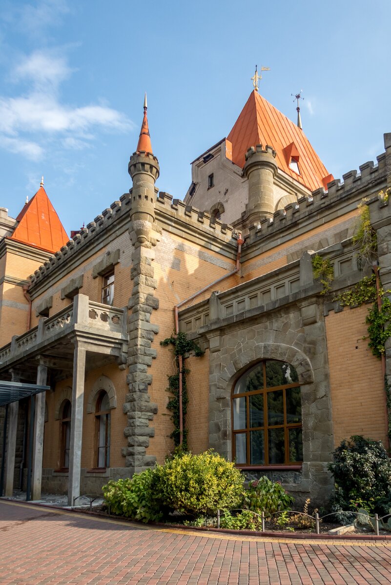 Здание действительно великолепно. Будто средневековый замок. Даже не верится, что возвели его не так и давно — в начале 20 века. Автор этой красоты знаменитый крымский зодчий Николай Краснов, автор Ливадийского дворца. Заказчица же — княгиня Анастасия Гагарина. Но тут такими категориями — заказчик/исполнитель — на самом деле оперировать грешно.