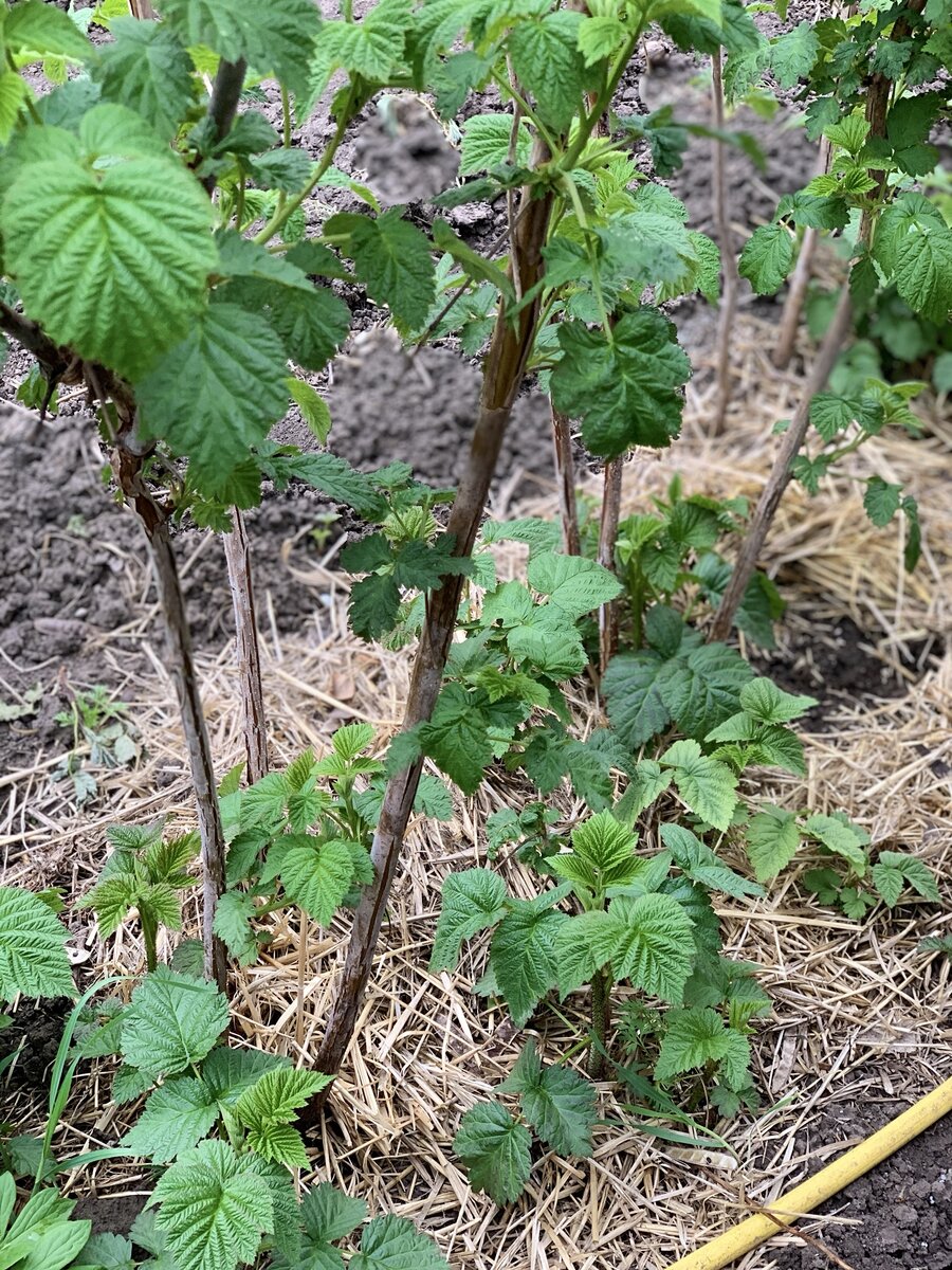 МНОГО садоводов жалуются что кустов много, а ягод едва хватает! И я с этим столкнулась,но спустя время я нашла точную формулу ухода за малиной. Я разделила малинник на 2 части С промежутком между ними около 2 м на одной плантации я выращиваю только плодоносящие побеги ,на другую пересаживая отпрыски.Я выращиваю малину редкими рядами.Обильно плодоносят даже нижнее побеги ,которые обычно остаются в тяни. Кусты хорошо проветриваются и освещается солнцем а значит и мне страшных болезней и вредители. По краям малинника вбила колья высотой 140см. На высоте 90 см от земли прикрепила к ним перекладину. Чтобы проволока не провисала подпираю рогатками. После сбора урожая наступает самый ответственный момент в уходе за посадками малины. Чтоб ускорить процесс вызревания побегов я прищипываю верхушки однолетних побегов малина. Удаляю все отплодоносившие стебли не оставляя пеньков. Одновременно со старыми стеблями удаляя все слабые поломанные повреждённые вредителями и болезнями ,оставляя молод