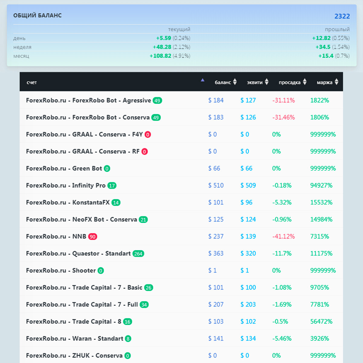 Публичный Портфель Проекта ForexRobo: https://forexrobo.ru/portfel/