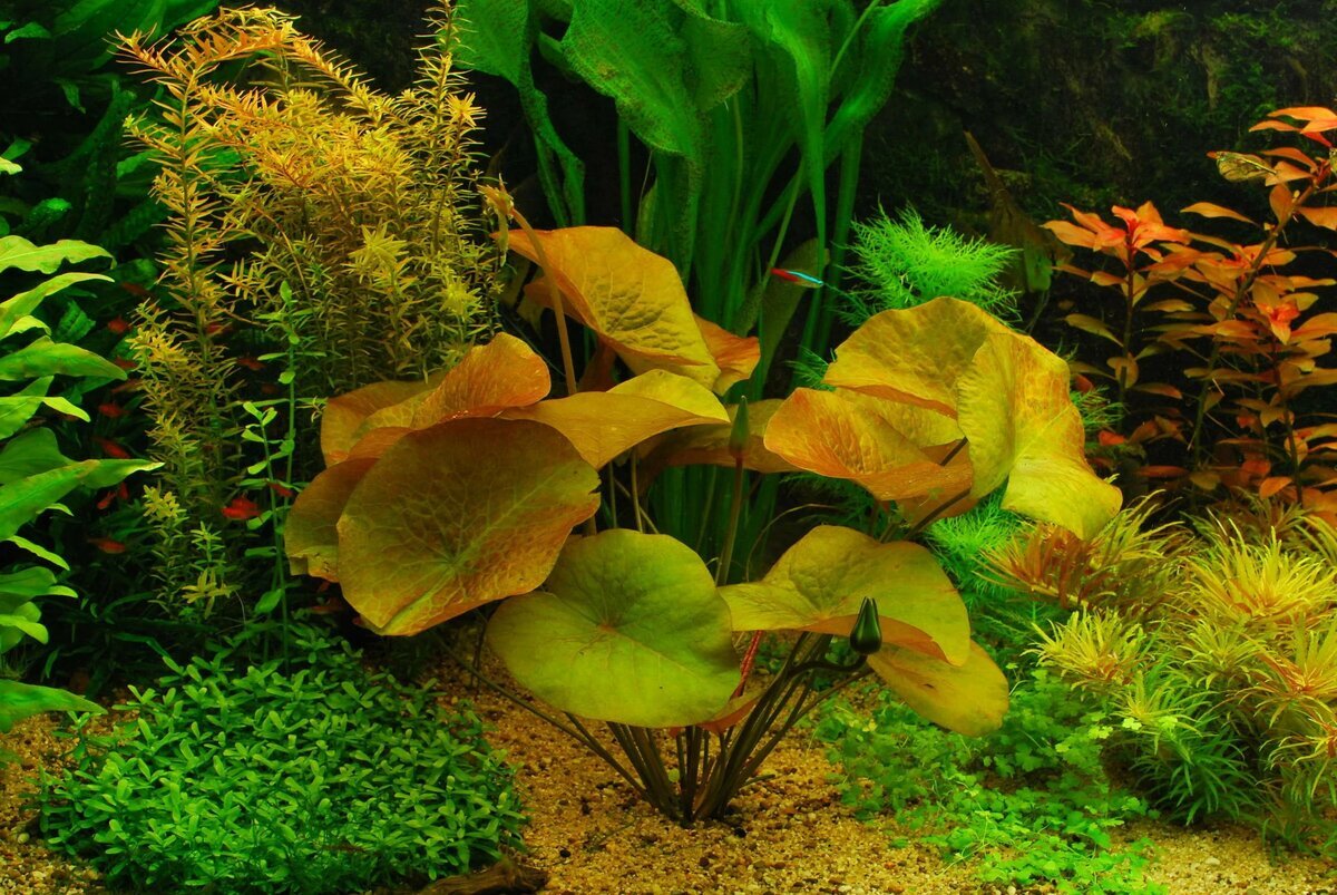 Домашний аквариум, как и природный водоем, может стать домом не только для рыбок и ракообразных, но и для множества водных растений. Здесь они выполняют ряд важных функций: не позволяют размножаться водорослям, поглощают азотистые соединения, а также насыщают емкость кислородом. Растения – «легкие» любого искусственного водоема, укрытие и защита для его обитателей, а также превосходное украшение, способное разнообразить ландшафт и добавить ему ярких красок.