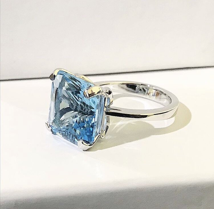 Возьмите топаз, 10 грамм серебра и тщательно перемешайте... конечно нет, все было иначе... Но обо всём по порядку. Меня отвлекал этот звонок, я сидел за микроскопом и крепил мелкие бриллианты , а телефон всё звенел и звенел... вспомнив чью то маму, я отложил штихель и снял трубку. Чуть взволнованный мужской голос на другом конце просил о срочной встрече : ..через три дня мероприятие, и мне очень нужно её удивить... .. У меня бывают срочные заказы, но три дня... Что то в голосе моего собеседника удержало, готовые сорваться слова о нереальности сроков... Через четверть часа он был у меня в мастерской. Володя знал меня по работам в Инстаграм, где я веду свой блог. Мы разговорились , я узнал, что через три дня у его девушки день рождения, сейчас она в больнице и ему хочется сделать ей подарок, который поддержит её в это трудное время, и даст надежду, что всё будет хорошо... Мы вместе решили, это будет белоснежное серебряное кольцо с голубым Топазом . Весь лёгкий и воздушный образ укр