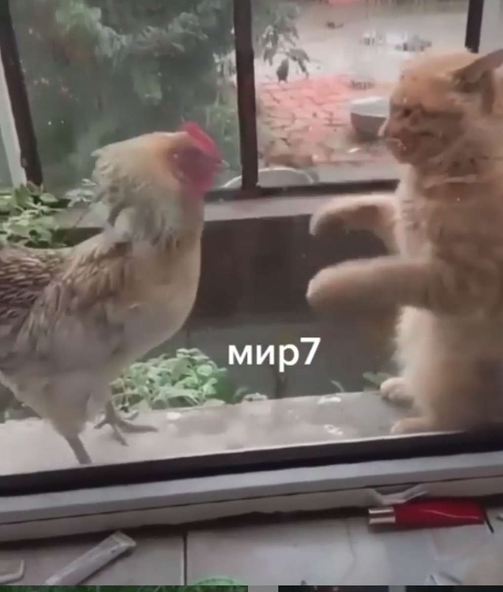 Домашние питомцы курица и кошка то ли играют, то ли не поделили чего. И главное всё так аккуратно и нежненько выясняют. Хотя по идеи , если точнее быть по природе должны быть врагами и биться ой как сильно. А они забили на природу болт на 20 и живут мирненько. Но, как и в любой семье бывают разногласия. Всем спасибо за прочитанную статью подписывайтесь на наш канал и читайте много интересного у нас на сайте.