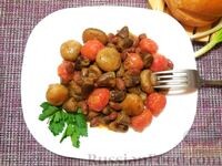 4 порции 1 час (ваши 30 мин) Куриные сердечки - нечастый гость на наших столах. И это напрасно, ведь из них можно приготовить интересные и полезные блюда. Куриные сердечки, тушенные с грибами, - одно из них. Сердечки, целые шампиньоны и помидоры черри отлично гармонируют друг с другом. И всё это под вкуснейшим соусом из соевого соуса, сливок и горчицы! Приготовление : Сердечки тщательно промываем, срезаем лишний жир и плеву. Отвариваем сердечки в подсоленной воде под крышкой в течение 30 минут. Откидываем на дуршлаг. Грибы моем, отвариваем 15 минут в подсоленной воде. Если грибы слишком большие, режем их пополам. Откидываем на дуршлаг. Помидоры заливаем кипятком на 30 секунд. Затем промываем холодной водой и очищаем от шкурки. Отваренные грибы обжариваем на растительном масле в течение 5 минут. После обжарки выкладываем грибы в удобную посуду. Отваренные сердечки также обжариваем на растительном масле 5 минут. Соевый соус и горчицу смешиваем. В сковороду