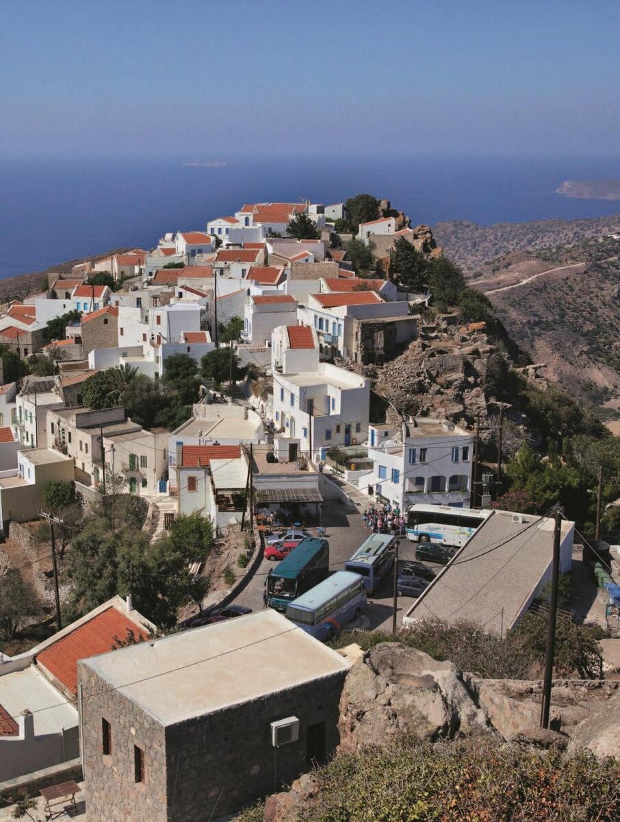 В отличие от соседних островов Нисирос выглядит зеленым и оживленным. В Мандраки много баров и сувенирных лавок с фигурками греческих богов. Здесь весело кричат дети, и кошки выглядят вполне откормленными. Остров изнутри согревает мерное дыхание спящего вулкана. Его можно почувствовать в подвалах домов, а также в специальных нишах на склонах гор — «натуральных саунах». Пемзистая почва обильно запасает влагу, и оттого в этой земле растет все что ни воткни, особенно оливы и каменные дубы. А главное, перемешиваясь с сернистыми выхлопами кальдеры и запахом базилика, здесь витает дух предпринимательства. Мой глаз радуют не столько кинематографические виды вулкана, сложенного из слоев разноцветного лавового песка, сколько кафе на его кромке с бутылочками сумады и безвкусные подобия сувениров, выложенные рядом с конфетами. Про особое отношение греков к родине очень понятно мне рассказывает Майк Захариадис, приятный и крайне интересный, импозантный мужчина в самом греческом соку, уроженец