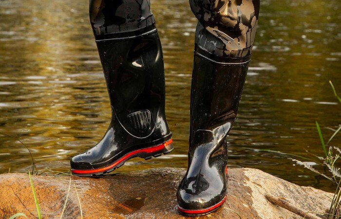 Раздел: Статьи о рыбалке Каждый, кто хоть раз занимался рыбной ловлей, знает, как важен правильный выбор обуви. Она должна иметь нескользкую подошву, материал, который не пропускает влагу и обладает согревающими качествами. Что касается высоты сапог, можно сказать следующее: всегда нужно быть готовым к тому, что придется заходить в воду, сражаясь с особенно непокорной рыбой, так что уровень сапог должен быть не ниже, чем по колено, а желательно — еще выше. Качественные сапоги для рыбалки спасут вас в ситуации, когда предстоит долгий поход по топкому и грязному берегу. Обувь не должна быть слишком тяжелой, в противном случае вы очень быстро устанете. Померьте обувь, она должна быть удобной. Используемый материал должен быть достаточно прочным, он не должен терять пластичность на морозе. Чтобы обувь не пропускала влагу, все швы в нижней части голенища должна быть тщательно проклеены. Наружный материал пропитывается составами, которые отводят влагу. Для комфорта и для повышения влагоуст