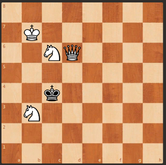 Очередная шахматная задача. Автор задачи Чебапов, 1982 год. На шахматной доске 5 фигур, причем у белых 2 коня и ферзь. Белые начинают и ставят мат в 2 хода. Смотрите так же редкий выигрыш ферзь против ферзя тут>>> Если публикация понравилась, ставьте лайк, подписывайтесь на канал, и будут интересные шахматные задачи Решение идут далее в галерее Подпишитесь и будут новые интересные задачи Хитрый выигрыш при проигрыше тут>>> Белые матуют в 2 хитрых хода тут