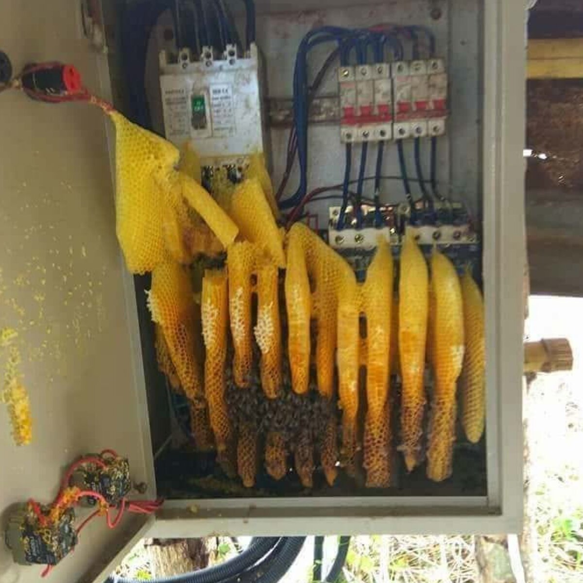 Открыл на днях шкаф распределительный, давно туда ни кто не заглядывал. А как оказалось зря, там был хороший сладкий сюрприз «пчелиный улей». Мёд оказался вкусным 👍