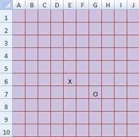 Обожаю эту игру! Правила не так сложны, как кажется, а мозговой штурм вам обеспечен! Сейчас у нас есть готовая доска-поле с набором камней, а раньше просто рисовали крестики-нолики-треугольники на тетрадном листе в клетку. С дочкой начали играть лет в 7, а сейчас с мужем порой садимся мозг взбодрить. Эту игру ещё называют "Пять в ряд". Играем по принципу знакомой всем игры "крестики-нолики", но собираем не три значка в одной линии, а пять. При этом поле не ограничено квадратом 3х3. Играйте, насколько позволит лист бумаги. Я для примера взяла поле 10*10. Итак, игроки поставили свои камни на Е6 и G7( на каждой картинке первый ход у крестиков) Крестики решили собирать диагональ (ход F5), а нолики горизонталь(D7) Крестики продлевают диагональ на G4, а нолики свою горизонталь E7 Крестики, естественно, ставят камень на Н3, а нолики спохватываются и преграждают им путь I2 Тут и крестики замечают, что у ноликов неплохая позиция на горизонтали, и рушат их планы своим камнем на F7. Нолики мен