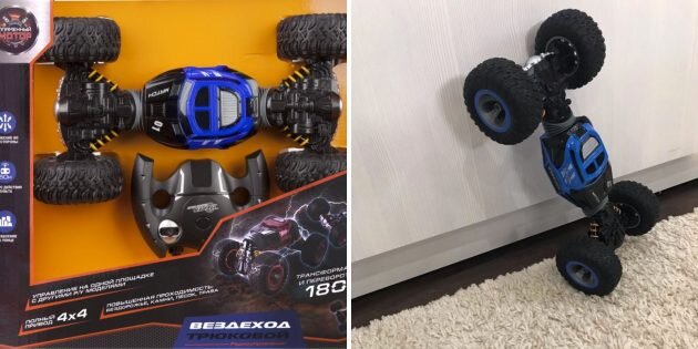 Манёвренный вездеход‑трансформер с внушительной проходимостью, которому нипочём камни, трава и песок. Благодаря возможности изменения высоты подвески, переворота на 180° и движения в обе стороны эта машинка способна преодолевать любые препятствия, выполняя при этом лихие трюки.