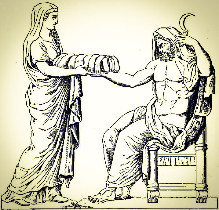После того как Кронос принял для себя решение, сохранить трон любой ценой, его нормальная и спокойная жизнь закончилась в тот же миг. Он не мог спать, есть, а только ждал когда на свет появиться его дитя. Рея же на тот момент была на сносях и у неё будет девочка и звать её будут Гестия и в будущем она станет богиней домашнего очага. Настало время родов, все прошло удачно и маленькая Гестия появилась на свет. Узнав что жена родила Кронос приказал принести ему дочь. Рея не зная ещё о замысле мужа с радостью дает ему Гестию, ожидая увидеть восторг и радость на лице своего мужа. Но как только ребенок попал в руки Кроноса тот взял его и проглотил целиком. Рея была в ужасе она не могла поверить что её любимый муж которого она так хорошо знала, мог совершить такой ужасный поступок. Но всё же они продолжили жить как обычная семья, и когда Рея оказывалась беременна, Кронос снова приказывал приносить ему детей и проглатывал их, так он уже проглотил : Гестию,Деметру, Геру, Аида,Посейдона.