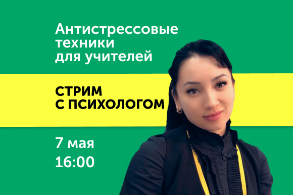 7 мая в 16:00 приглашаем всех, кто сложно переживает эту весну, на стрим «Антистрессовые техники для учителей» на YouTube-канале Skyteach! Его проведет штатный психолог Skyeng Екатерина Джан.