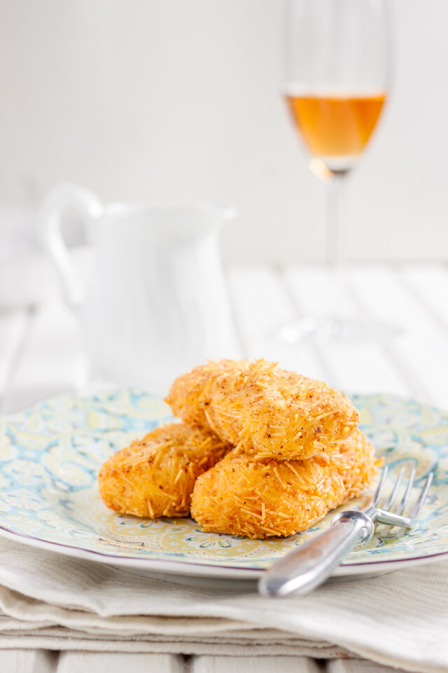 Если у вы захотели удивить гостей, попробуйте приготовить такое необычное, но очень вкусное блюдо! Вам потребуется: 🥔Картофель — 1,5 кг 🥓Ветчина — 100 г 🍝Вермишель мелкая яичная — 70–100 г 🥚Яйцо — 3 шт. 🧈Масло сливочное — 50 г 🧂Перец черный свежемолотый 🌰Орех мускатный — 0,3 ч. л. 🧂Соль 🍚Мука для панировки 🍞Сухари панировочные — 80–100 г 🥛Масло для фритюра Как готовить: ✔️1. Картофель очистить, отварить в подсоленной воде до готовности, затем воду слить, крышку с кастрюли снять и оставить картофель на 10 минут, чтобы подсох. Поверхность должна побелеть. Затем протереть картофель через сито. ✔️2. Нарезать мелким кубиком ветчину. ✔️3. В пюре добавить 3 желтка, сл.масло, мускатный орех, соль и нарезанную ветчину. Перемешать. ✔️4. Белки разделить пополам, одну часть взбить в крепкую пену и добавить к пюре, вмешивать аккуратно, снизу вверх. ✔️5. Мелкую яичную вермишель истолочь в ступке или положить в пакет и прокатить по нему несколько раз скалкой. ✔️6. Картофельную массу скатат