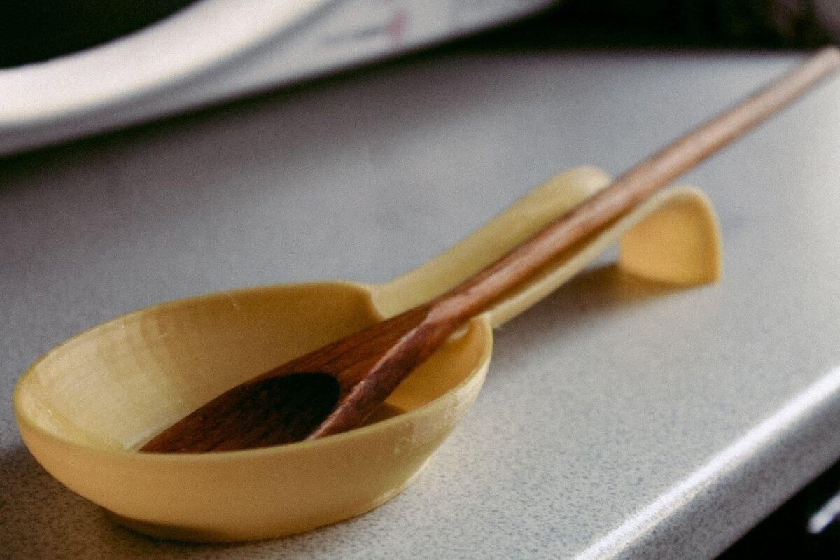 Например, недавно мы напечатали подставку под ложку. Мелочь, но очень нужная на кухонном столе!