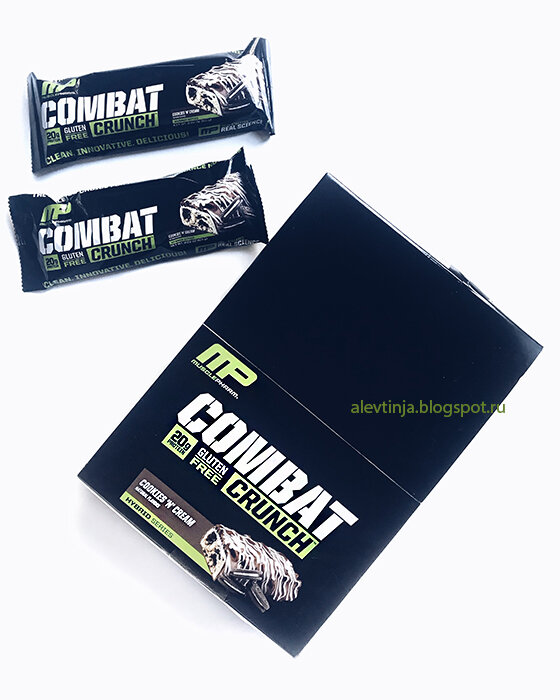 Сейчас на iHerb действует скидка 15% ( +5% по коду PAT6959) на огромный раздел "Спорт", куда входят не только спортпит, но и омега, коэнзим Q10 и другие добавки. А сегодня я расскажу о протеиновых батончиках и, конечно же, покажу их во всей красе. Заказать можно здесь - MusclePharm, Хрустящие батончики Combat с кремом, 12 батончиков по 2,22 унции (63 г) "Запеченные протеиновые батончики Combat Crunch изготовлены по уникальной технологии выпекания для получения превосходного вкуса и мягкой консистенции. Батончики богаты протеином и клетчаткой, имеют низкое содержание активных углеводов. В отличие от жестких, похожих на ириски, спортивных батончиков, Combat Crunch на вкус как мягкое печенье", - уверяет нас производитель. А я дополнительно скажу, что на одну порцию приходится 20 г белка, 5 г сахара и 210 калорий.