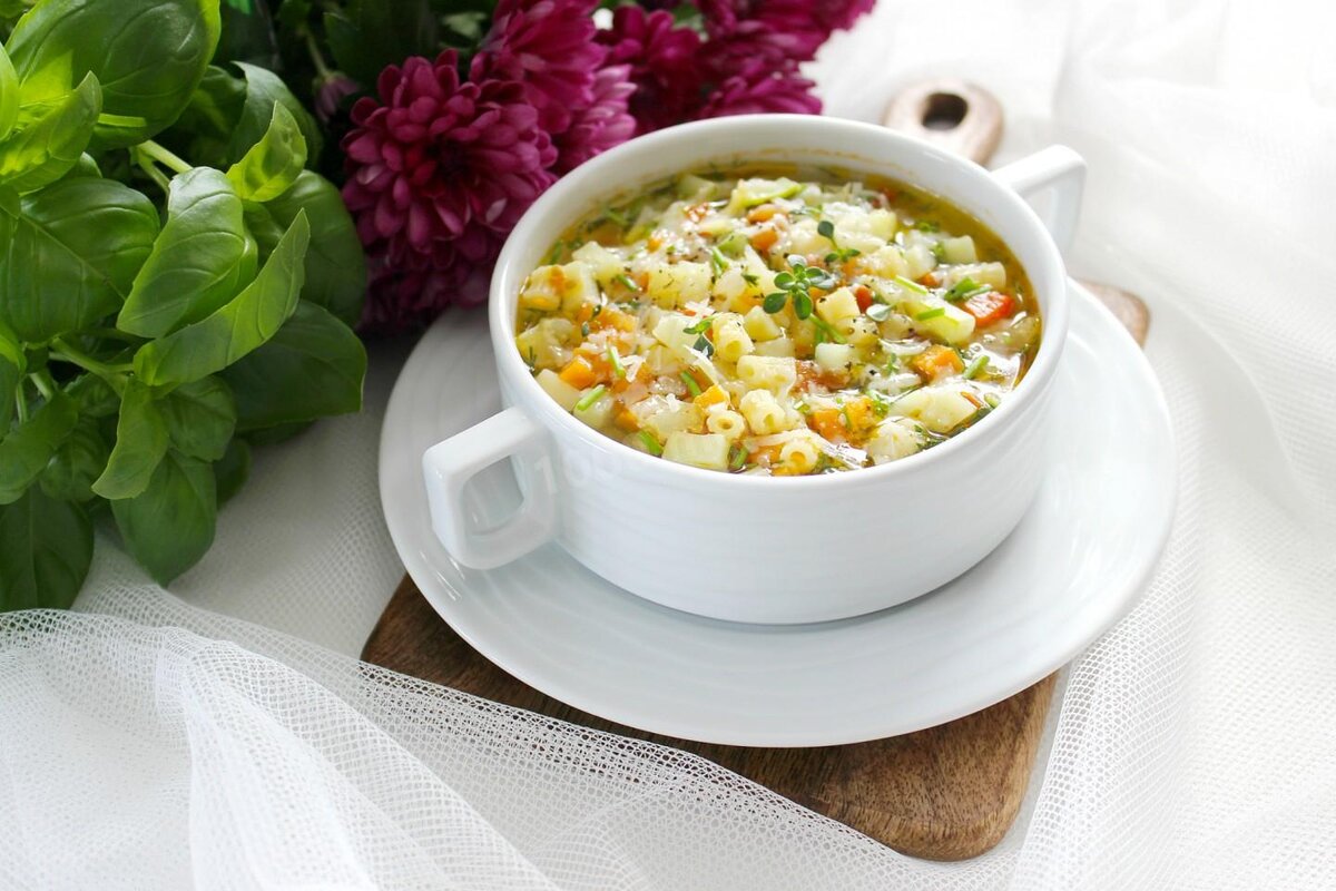 Минестроне пришёл к нам из солнечной Италии. Само название в переводе означает "большой суп", что не удивительно, так как готовится это первое блюдо из большого количества сезонных овощей.